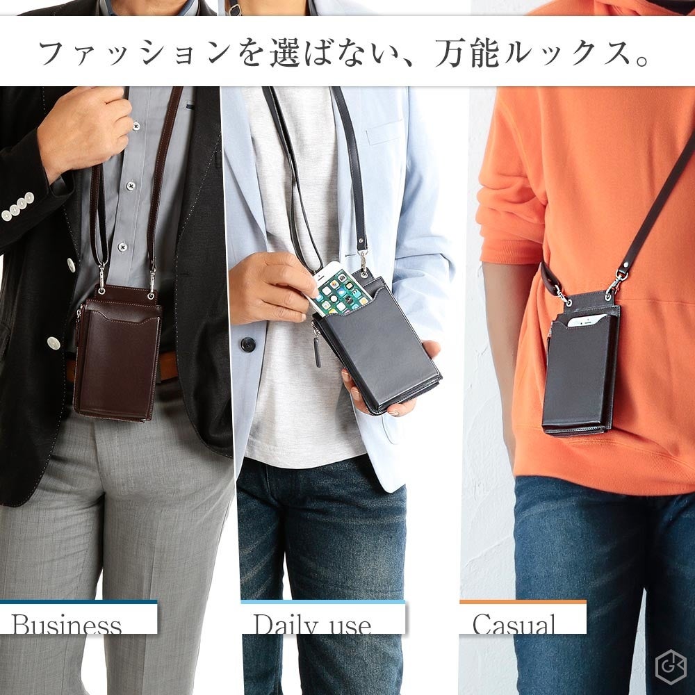 高品質かつシンプルで上品なデザインなので、どんなシーンでも選ばず使えるネックウォレットです。