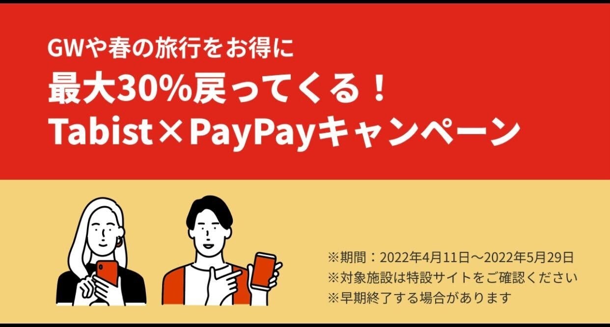 Tabist公式サイト:https://landings.tabist.co.jp/campaign/paypay-tabist30よりご確認ください。
