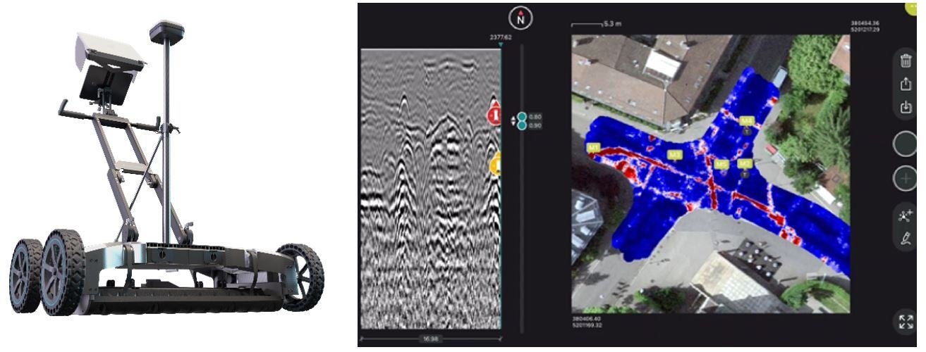 使用予定の地下埋設物機材(テクタスジャパン株式会社GS9000)とスキャンデータのマッピングイメージ図