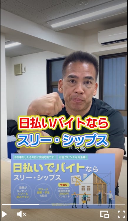 「日払いバイトならスリーシップス」と分かりやすいキャッチコピーを軸に動画戦術を立案。今すぐ働きたい10~20代前半の都内在住男性に絞って広告配信を実施。