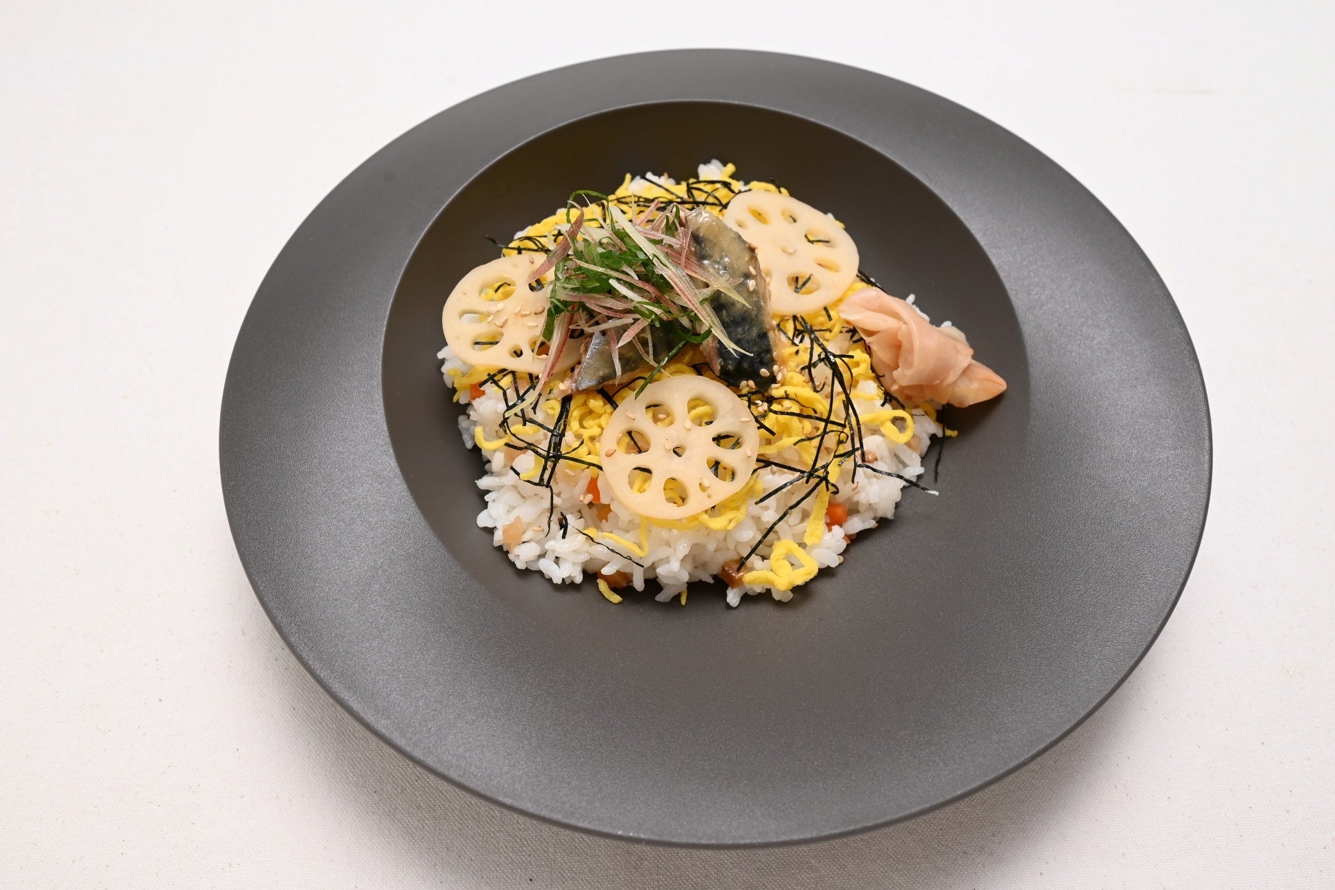 「カルローズ」のさらっとした食感を活かした、洋風ちらし寿司。濃厚なサバ味噌に、大葉やみょうがなどの薬味を添えて、後味さっぱりと召し上がっていただけます