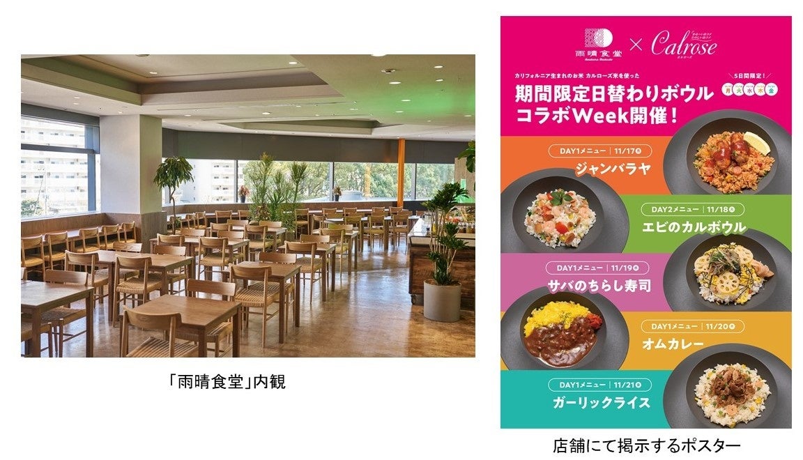 今回、カリフォルニア生まれのお米「カルローズ」の認知拡大とプロモーション活動を展開するUSAライス連合会と初めて連携し、「雨晴食堂」で「カルローズ」を使用したメニューを提供します。また、USAライス連合会が企業と連携して、社員食堂で「カルローズ」を本格的に展開するのは初の取り組みとなります(※2)。
