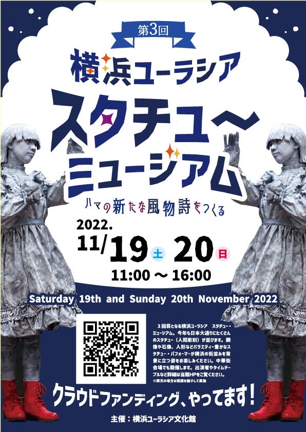 11月19・20日の2日間、第3回 横浜ユーラシア スタチュー・ミュージアムを開催します。昨年に引き続き、横浜中華街にも舞台をひろげ、参加するスタチューも規模を拡大いたします。開催にあたっては、資金調達のためクラウドファンディングも実施しますので皆様のご支援をお願いいたします。