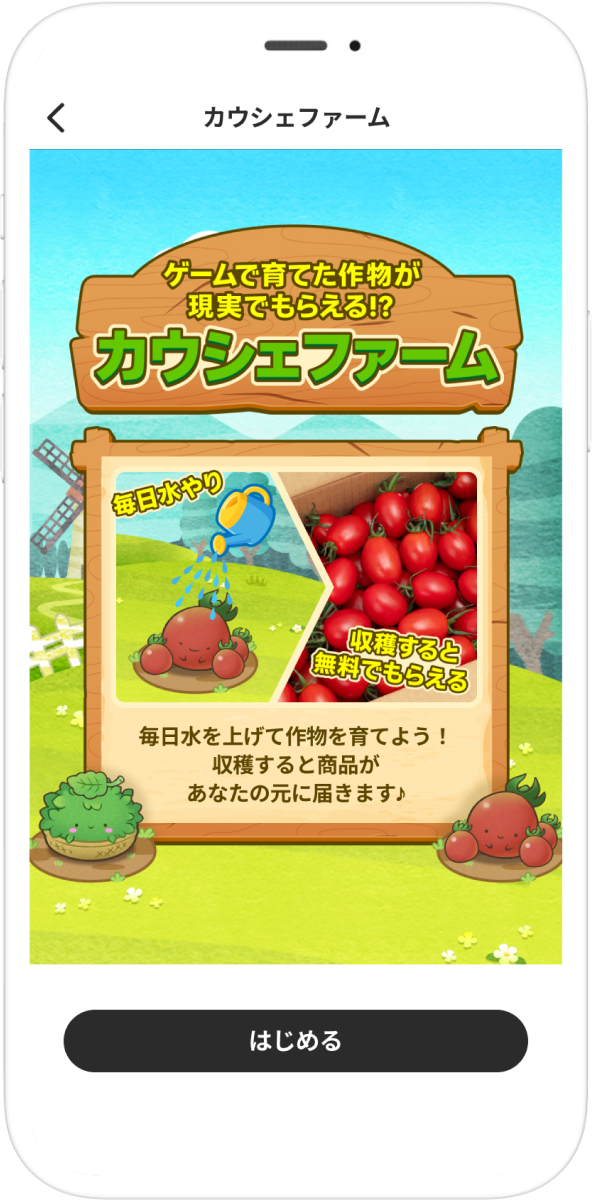 そんな新しいショッピング体験をさらに進化させていくため、今回「カウシェファーム」という農園で作物を育てるゲーム機能をアプリ内にリリースしました。