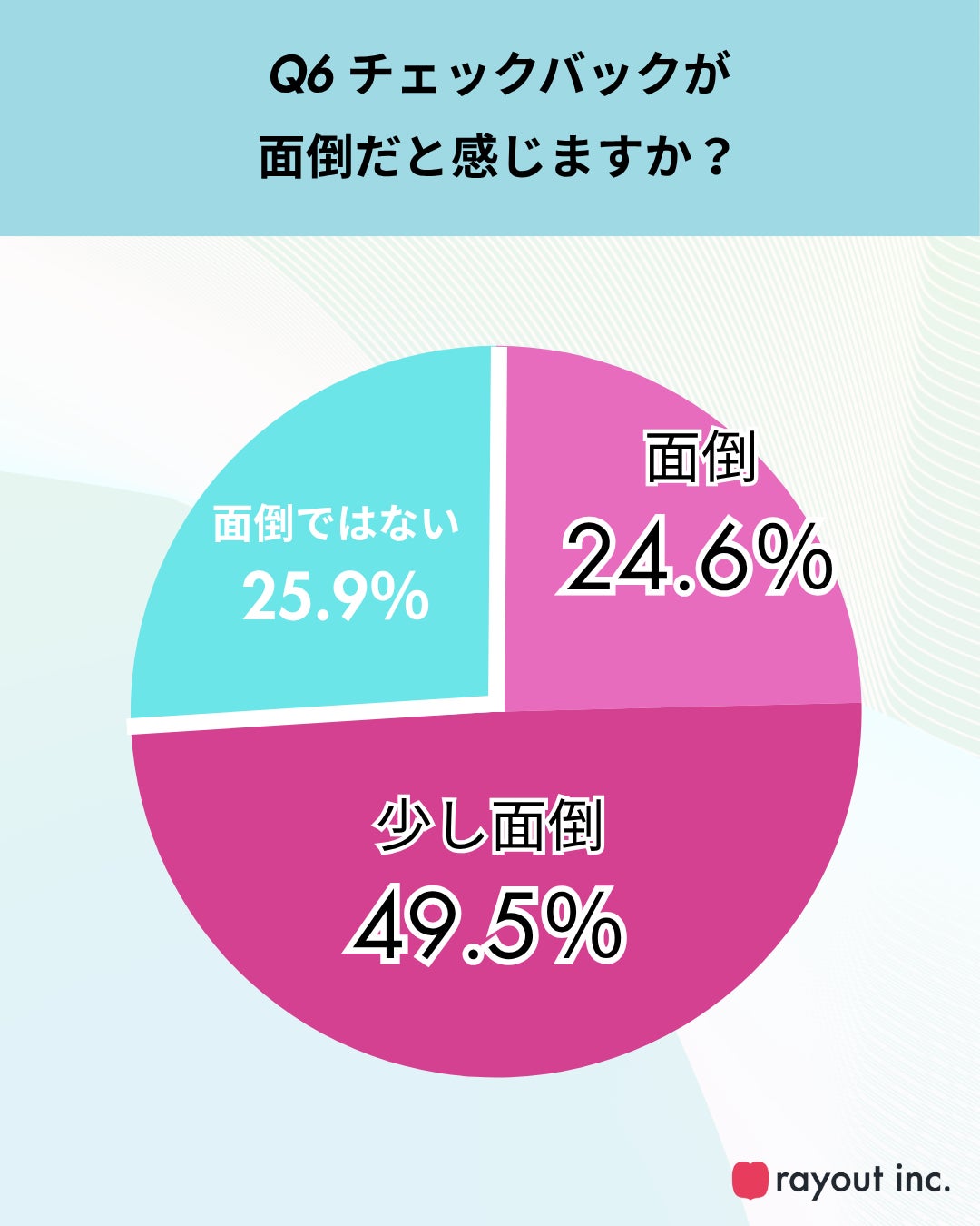 チェックバック業務について「面倒」「少し面倒」と感じている人は全体の7割以上(Q6)にのぼり、多くの現場で心理的・時間的な負荷が生じていることが明らかになりました。