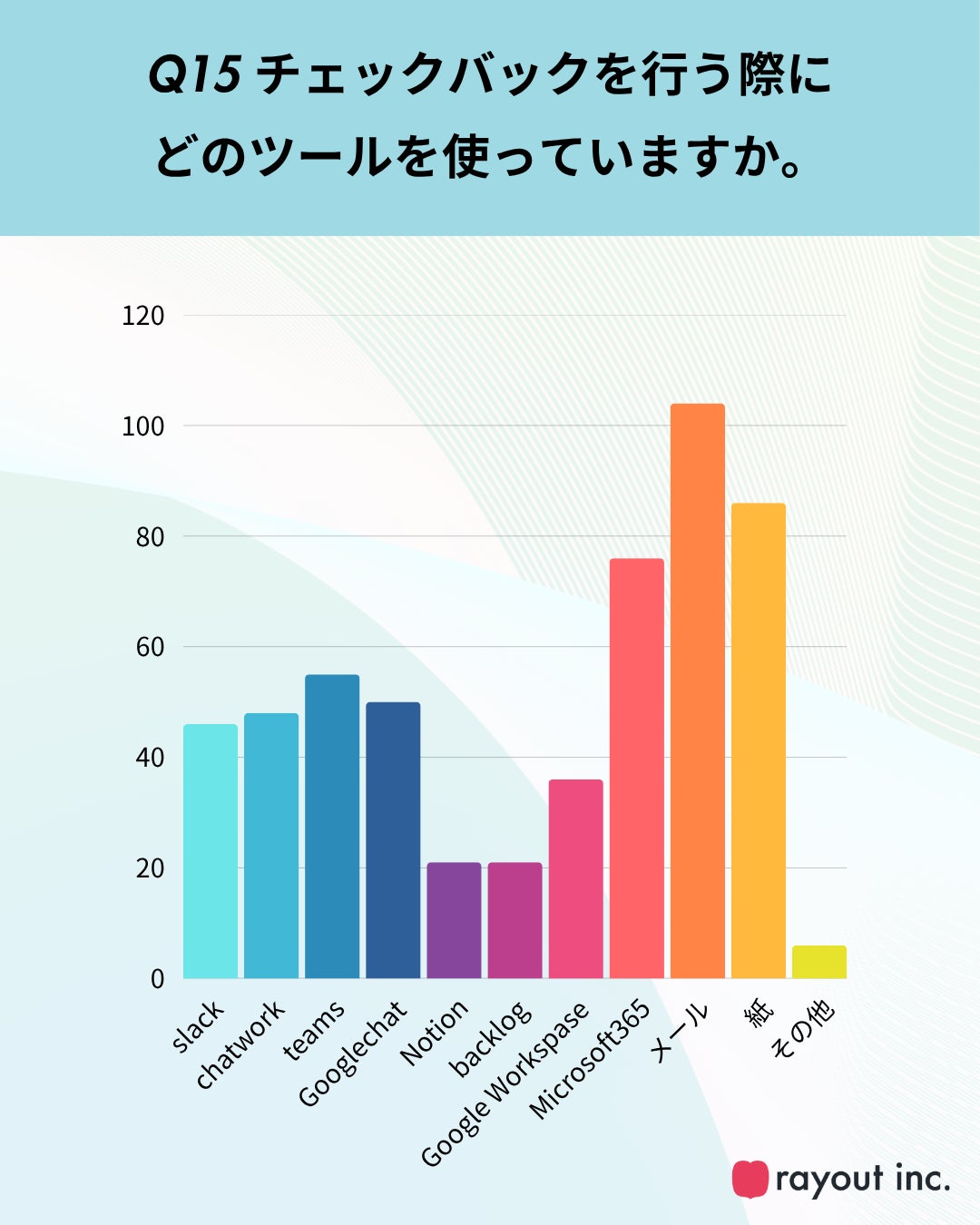チェックバック時に使用しているツールについて尋ねたところ(Q15)、最も多かったのは「メール」、次いで「紙」でのやりとりという結果に。現在もなお旧来型の手段が主流である実態が明らかになりました。WordやPowerPointなどのファイル上で直接チェックバックを行うケースも多く見られました。