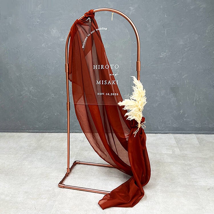 アクリル素材のウェルカムボードにはお二人のお名前と記念日を入れる事が可能です。