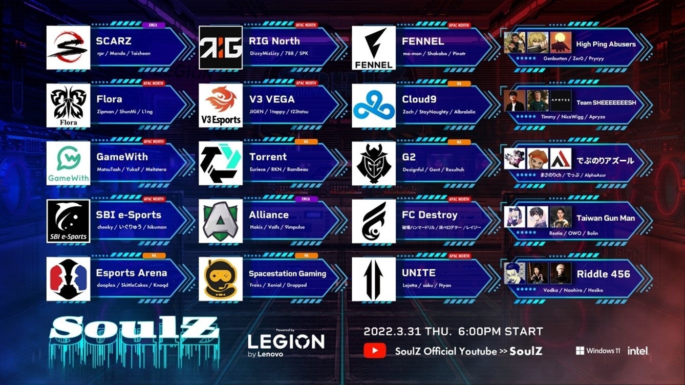 出場チームは、SoulZ公式Twitter(@SoulZ_jp)にて発表しました。