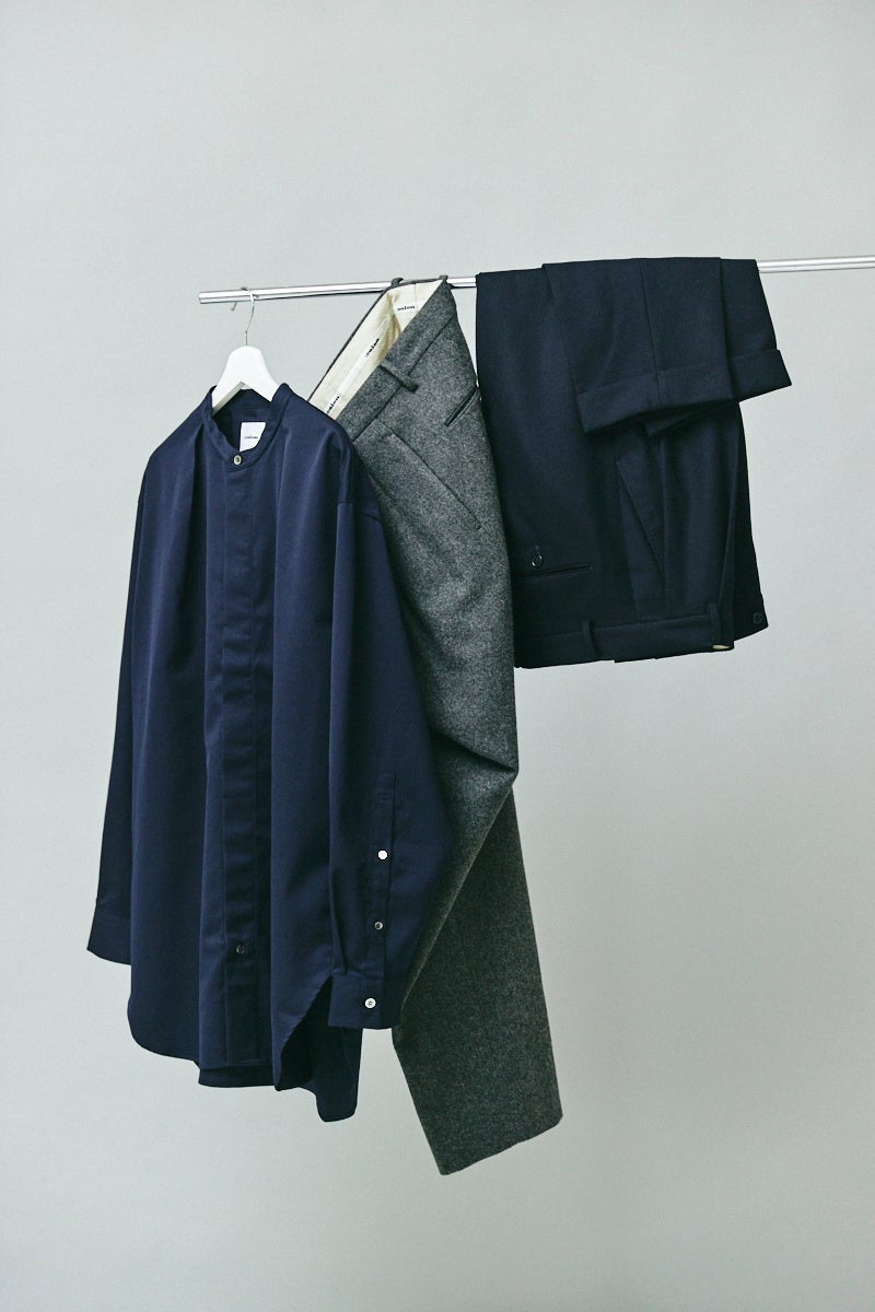 22年秋冬では、秋冬らしいウールフランネルや、メゾンでも使用された実績のあるウールギャバジン、春夏に比べて厚みを増したチノの、3素材でご用意。