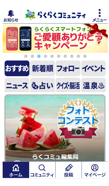 ※「らくらくコミュニティ」は、スマートフォン向けに最適化しており、スマートフォンからのご利用を推奨しています。