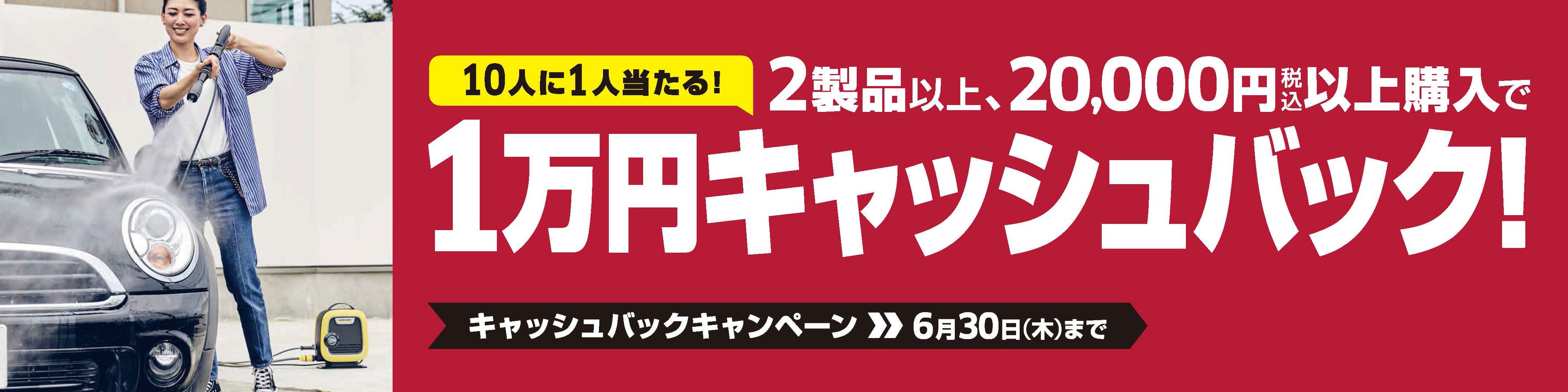 キャンペーン対象製品2点以上、合計20,000円(税込)以上をご購入いただいた方の中より抽選で10人に1人に1万円をキャッシュバック。