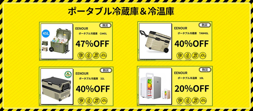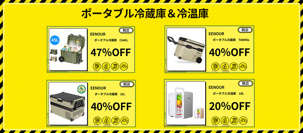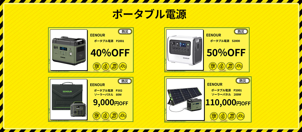 今回、当店は『楽天スーパーSALE&EENOUR連動企画、最大50%OFF+ポイント46倍』の激安な企画を実施中です。防災対策商品を揃え、ぜひお見逃しなく~