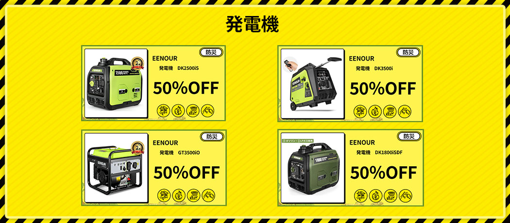 取扱い商品:ポータブル電源、ソーラーパネル、発電機、電動工具、照明器具、他