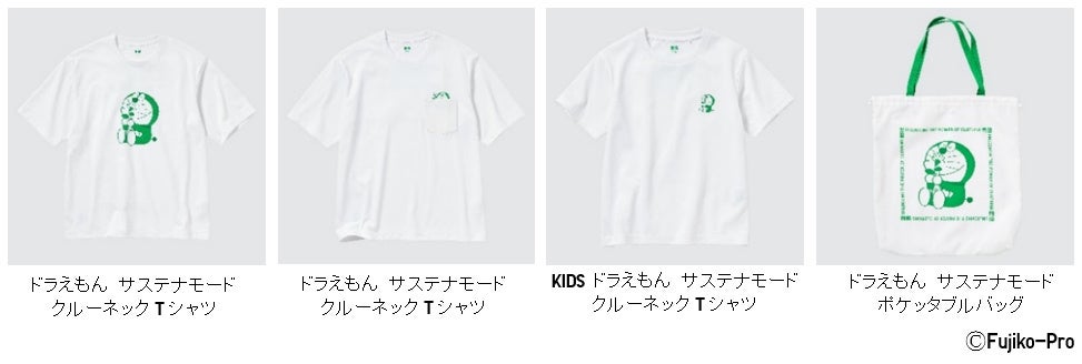 「JOIN:THE POWER OF CLOTHING」プロジェクト開始に伴い、生地にリサイクルポリエステルを100%使用した、ユニクロのグローバルサステナビリティアンバサダー「ドラえもん サステナモード」の新デザインの商品(Tシャツ、ポケッタブルバッグ)を、6月5日(月)に発売します。