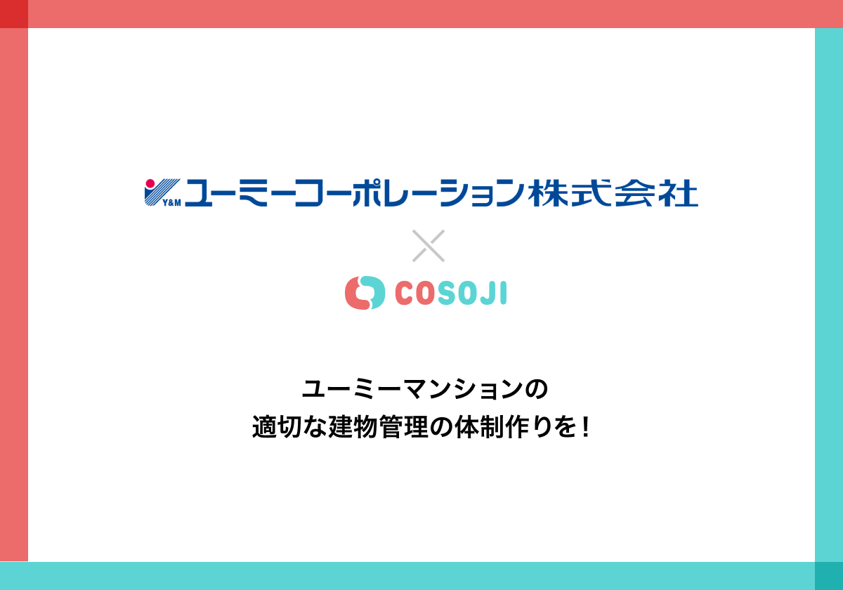【ユーミーマンションの適切な建物管理の体制作りを!】ユーミーコーポレーション株式会社様におけるFC加盟社およびオーナー様向けにCOSOJIの提供開始!
