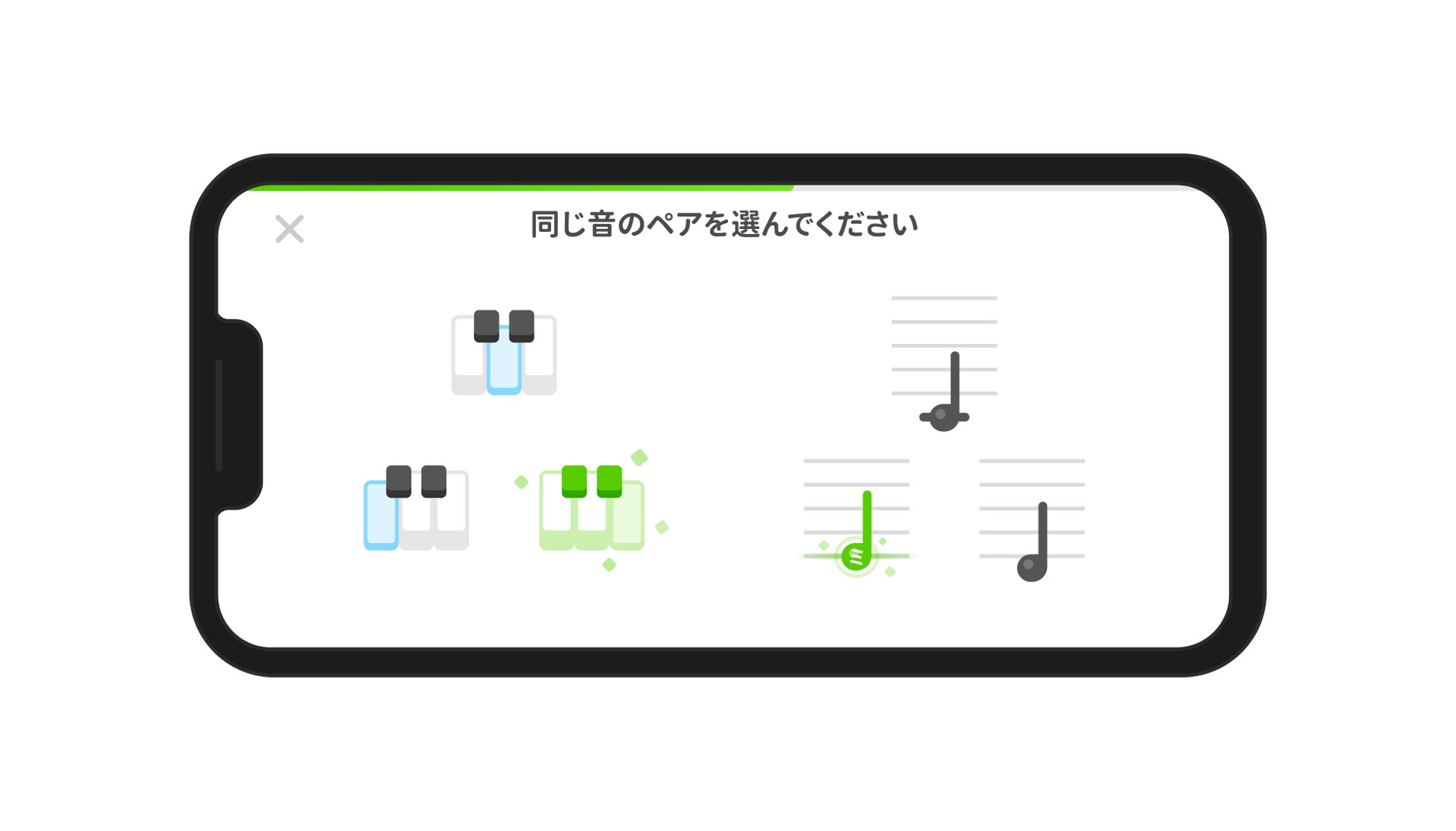 本コースでは、リズムの理解、楽譜の読み方、音の聞き分けといった基本的な音楽スキルの習得から、画面に表示されたキーボードを使用して楽曲を演奏できるようになるまでのプロセスをサポートします。コースは無料で提供され、Duolingoならではのゲーム感覚のレッスンや、単に教科書を読む・ビデオを視聴するだけではない、インタラクティブな学習が特徴です。音楽の概念を楽しみながら学べるため、誰でも無理なく継続できる学習体験を提供します。