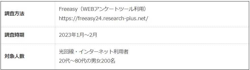 対象人数 | 光回線・インターネット利用者 20代~80代の男女200名 |