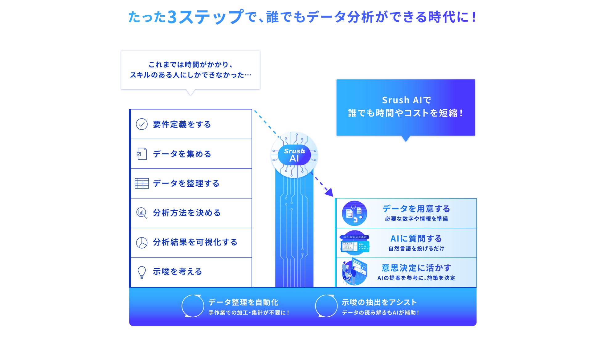 「Srush AI」の概要 ─ 3ステップで高度なデータ分析を