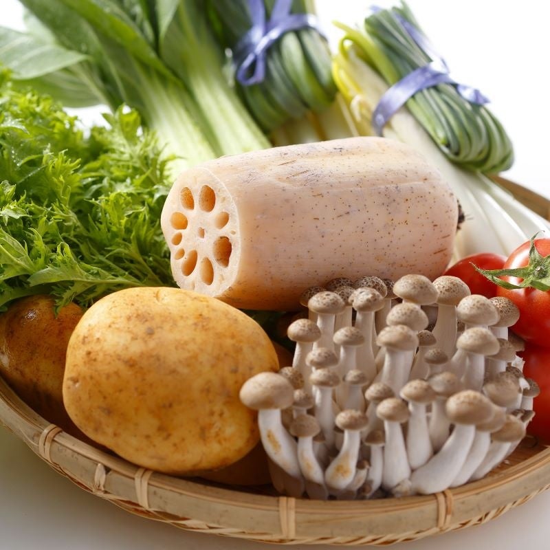 (さつまいも、みず菜、わさび菜、ぶなしめじ、れんこん、
