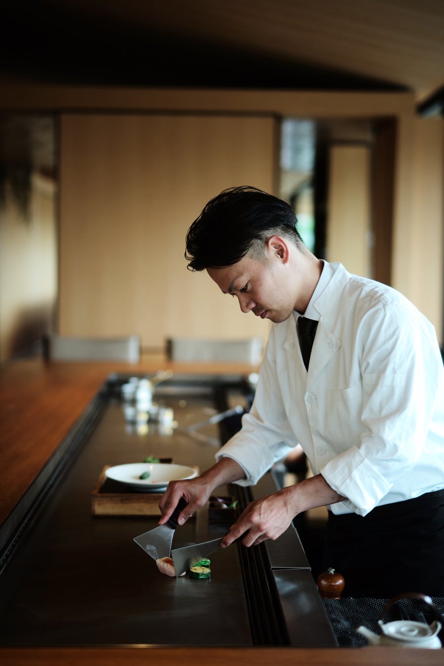 就任し、『Gault & Millau 2022』で3トックを獲得。クラシックを尊重しつつも柔軟な創造性を発揮する小山が、京都の豊かな食材を生かし、シアトリカルな鉄板焼きと繊細なフレンチが融合する唯一無二の食体験を生み出す。