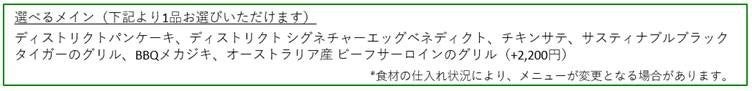 ◇ディストリクトの人気ブランチメニュー6種から選べるメインと季節のサラダ、スイーツがセットになった