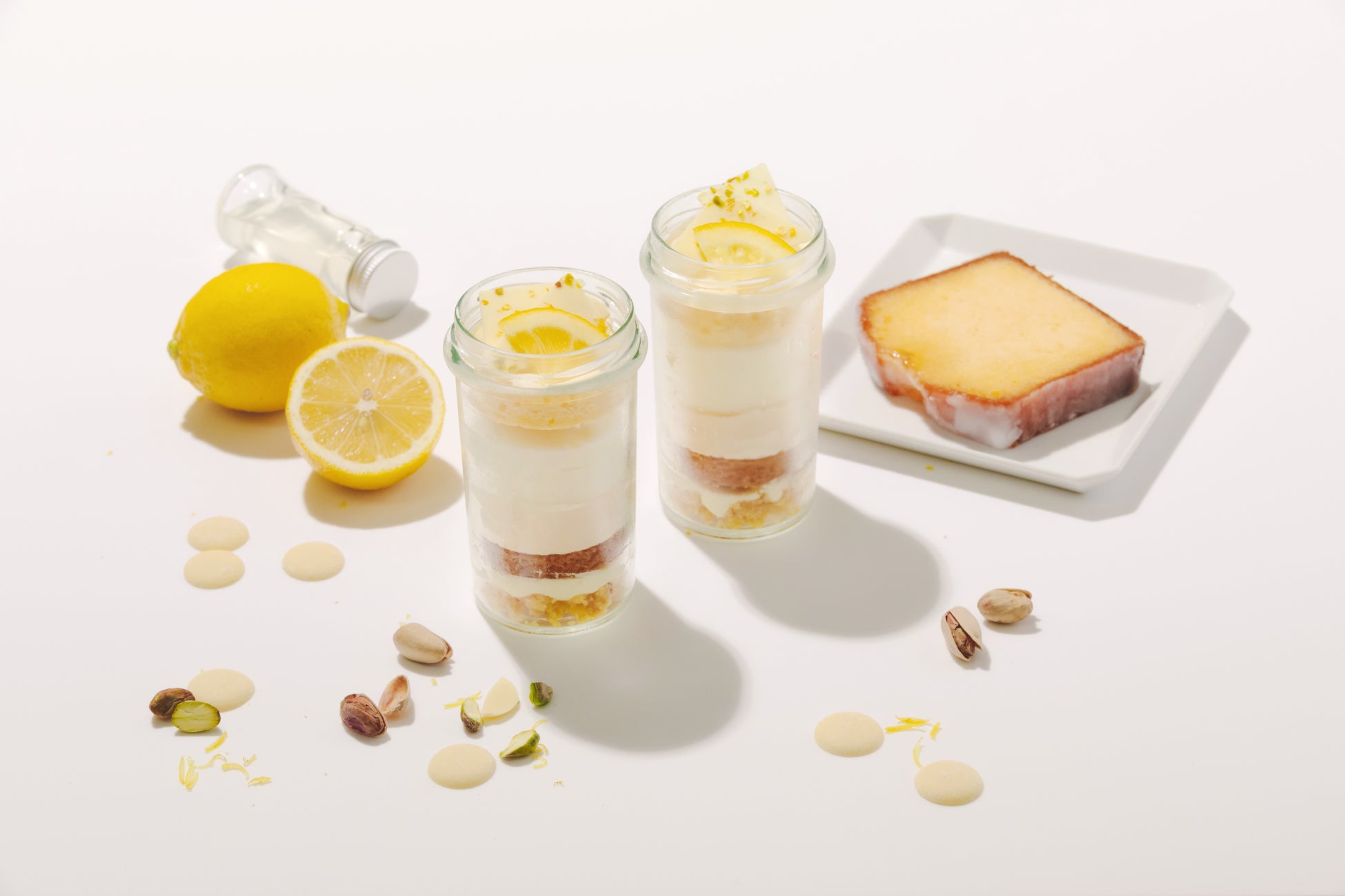 このたび、夏の季節にぴったりなフランス生まれの素朴なレモンケーキ「ウィークエンド・シトロン」をテーマに、愛媛県産の瀬戸内レモンを皮と種も含めて丸ごとたっぷり使用した、新フレーバーを開発しました。なかでもポイントは、瀬戸内レモンを丸ごとクラッシュしたレモンペーストで作ったシトロンケーキ。サブレやミルクアイスクリーム、クリームチーズフロスティングとともに爽やかな味わいに仕上げています。山梨の甲州ぶどうを使ったオレンジワイン「甲州オランジュ・グリ」の甘やかで上品な香りの“ほろ酔いジュレ”と一緒に、初夏の訪れをお楽しみください。