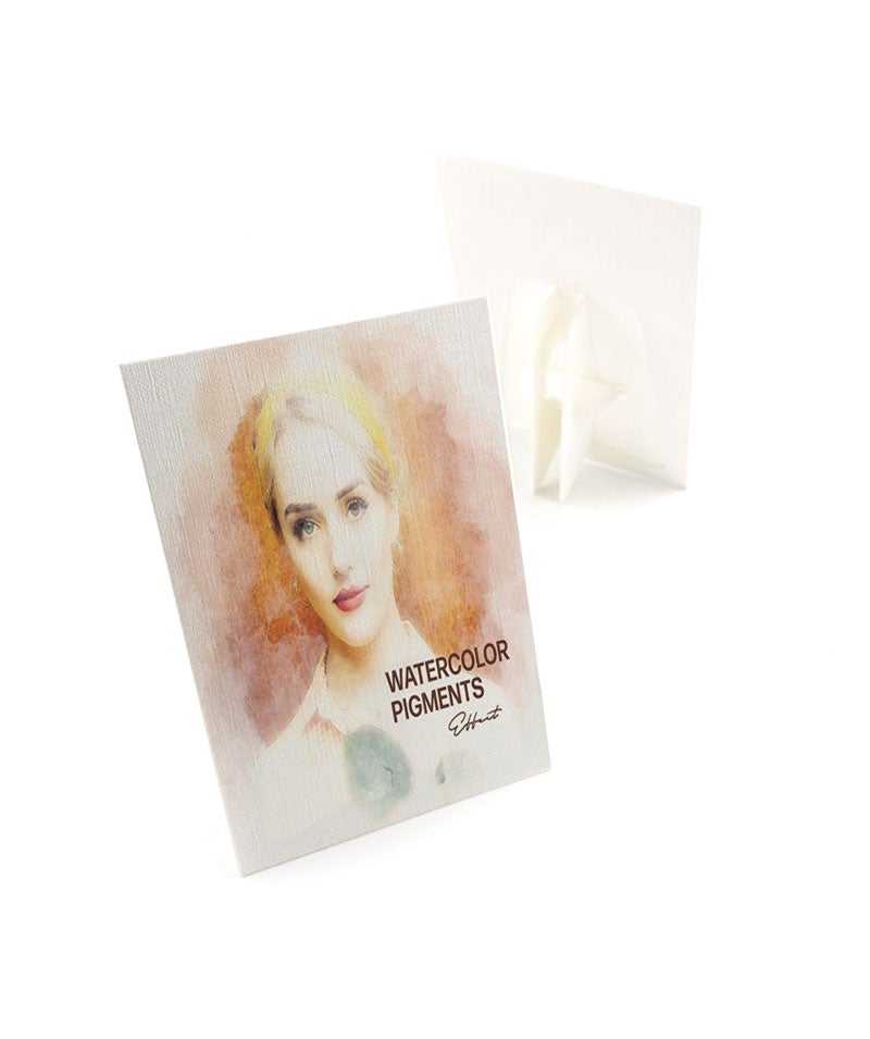 しっかりとした厚みのある風合いのキャンバス地風のポストカード。裏面にはスタンドパーツが付いており、お手元に届いたらすぐに飾れます。またポストカードサイズなので切手を貼ればそのまま郵送も可能な商品。インテリアやライブ・サイン会用グッズなどなどオリジナルグッズや販促ノベルティとして幅広いご活用が頂けます。