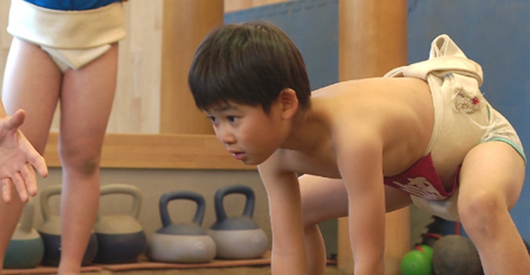 相撲の土俵を常設した「アイベース愛知」を舞台に、ちびっこ力士の大きな一歩