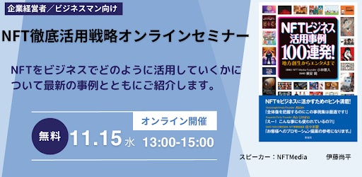 NFT専門メディア「NFT Media」が、満足度94.8%の「NFT徹底活用戦略オンラインセミナー」を11月15日(水)に開催!