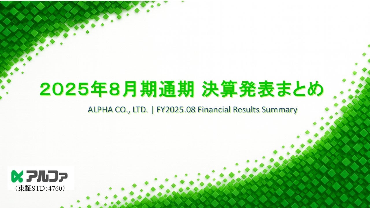 株式会社アルファ(本社:岡山県岡山市、代表取締役社長:岡本悟征、東証スタンダード:4760/名証メイン重複上場)は、2025年8月期(第43期)の通期決算を発表しました。