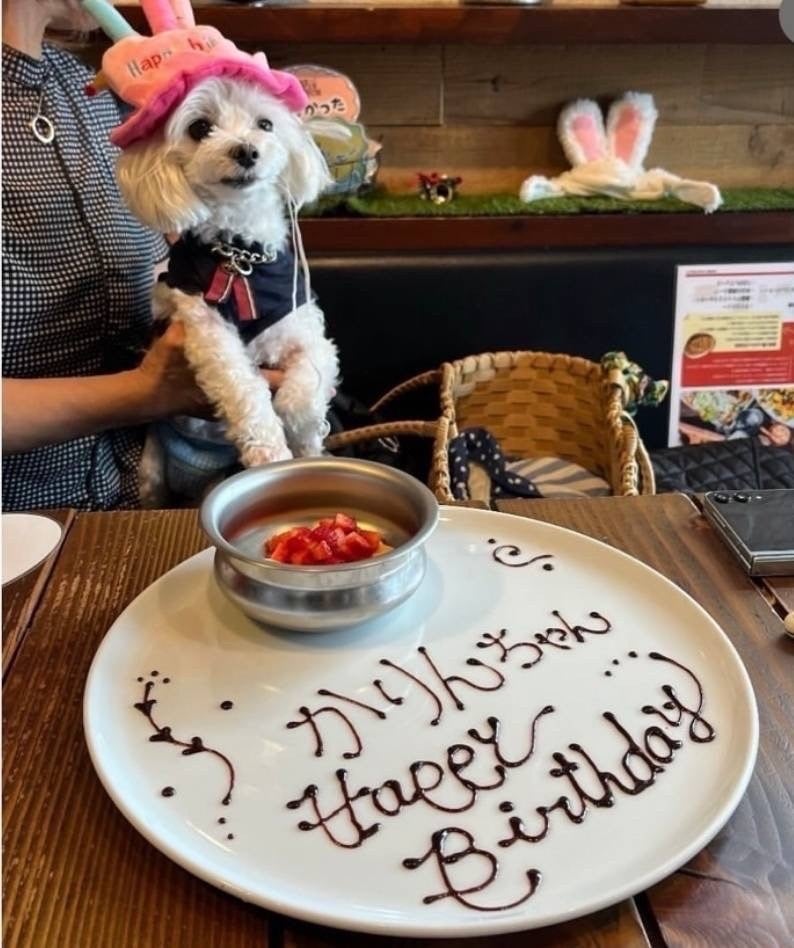 また、お誕生日プレートのご予約も受け付けております。被り物等もご用意しておりますので、かわいい写真を撮ってお祝いすることができます。Azzurro520で素敵なペットライフをお過ごしください。