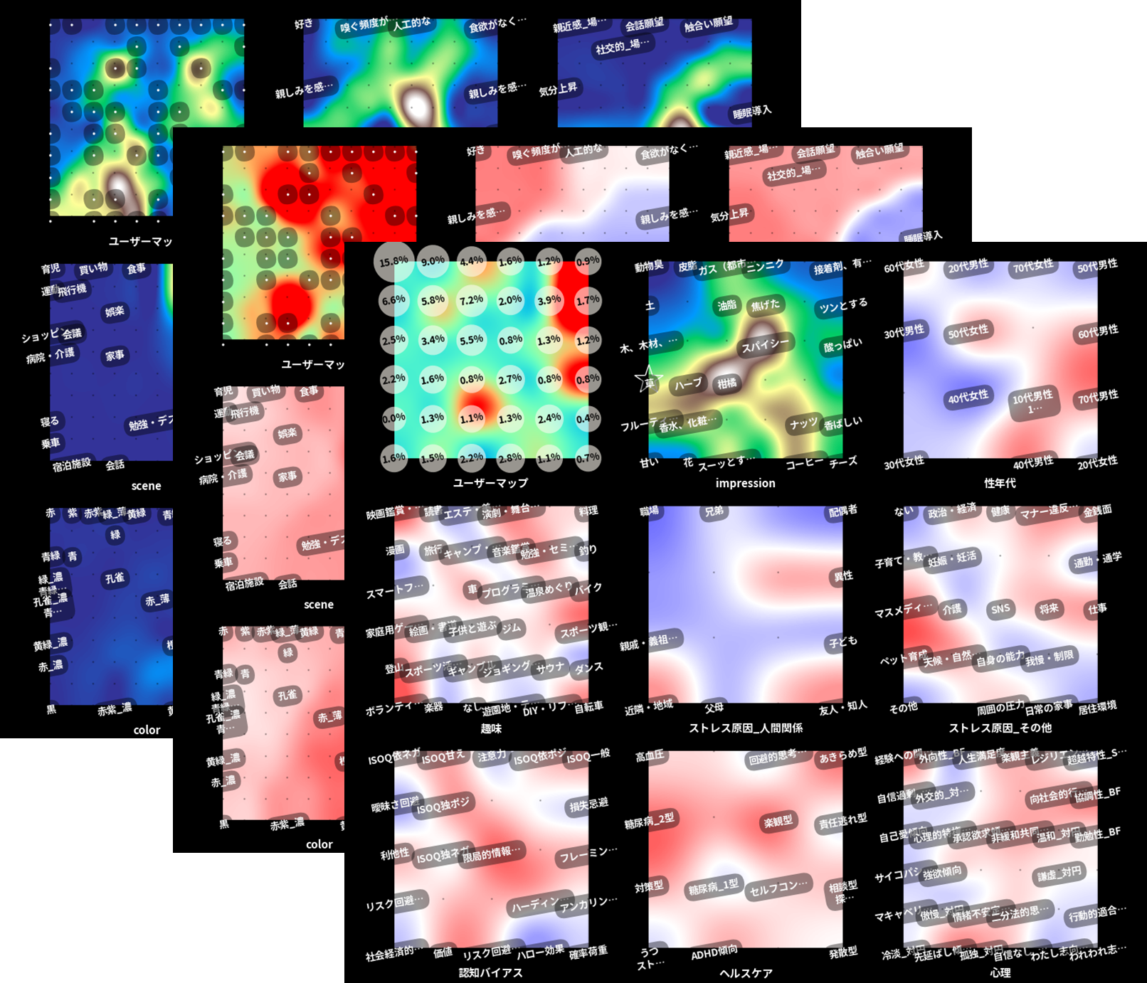 香料に対する一部の官能評価(24項目)から消費者の官能評価(107項目)を予測し、更に消費者特性(142項目)を可視化することができるため、消費者の人間特性や状態に応じた最適な香りの提供などの活用が期待されます。