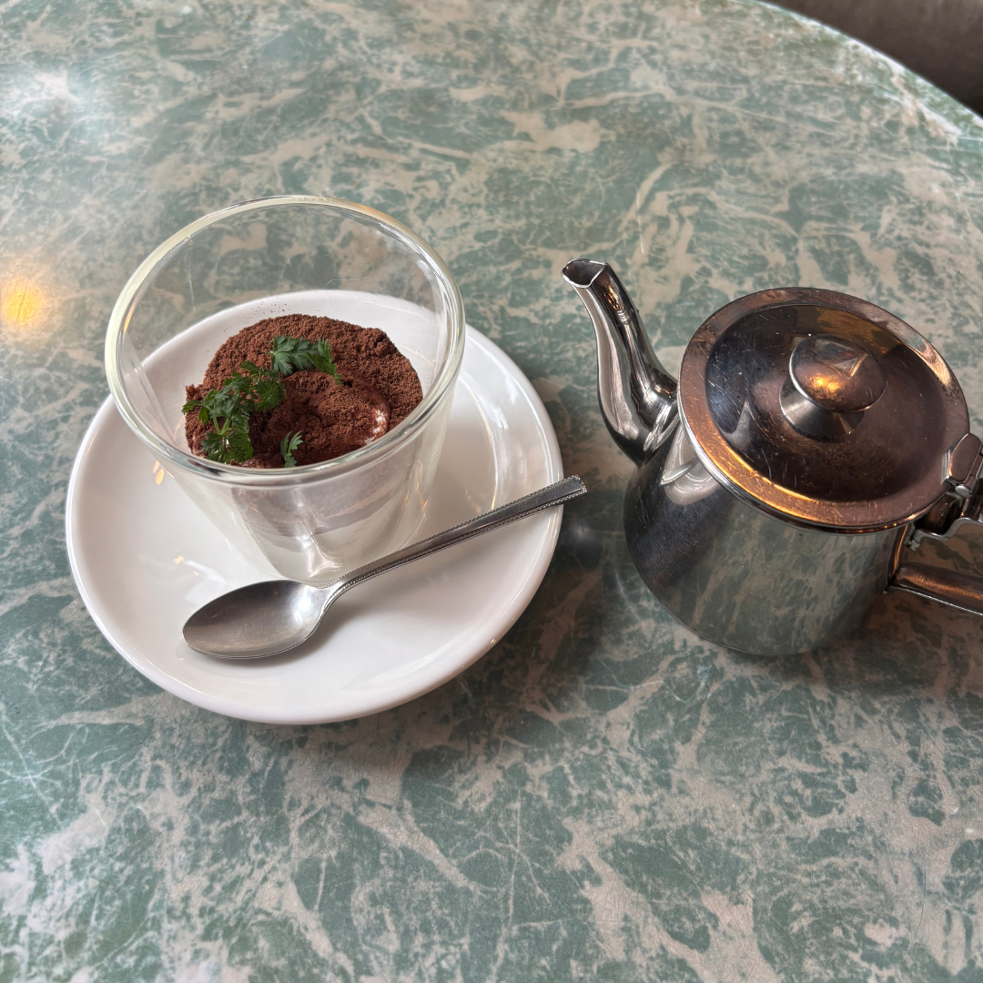 マシュマロとバニラ風味のホイップにご自身で紅茶を注ぐスタイルでハーブが新芽の用に芽吹き、出会いと別れの季節を彩ります