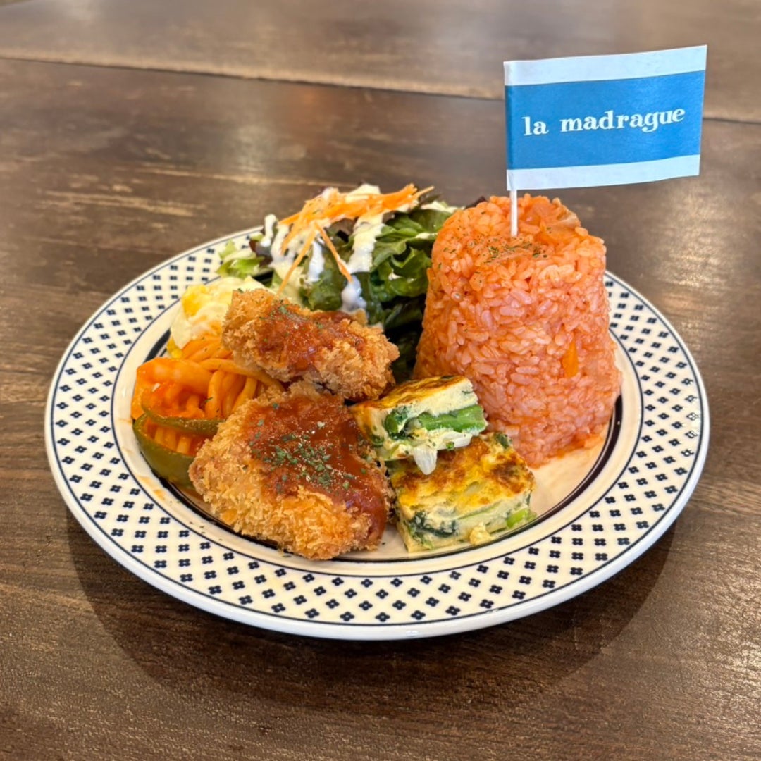 京都ポークの一口カツ、京都産の規格外野菜を使用したオムレツを、マドラグ藤井大丸店イチオシメニューであるお子様ランチ仕立てにしました