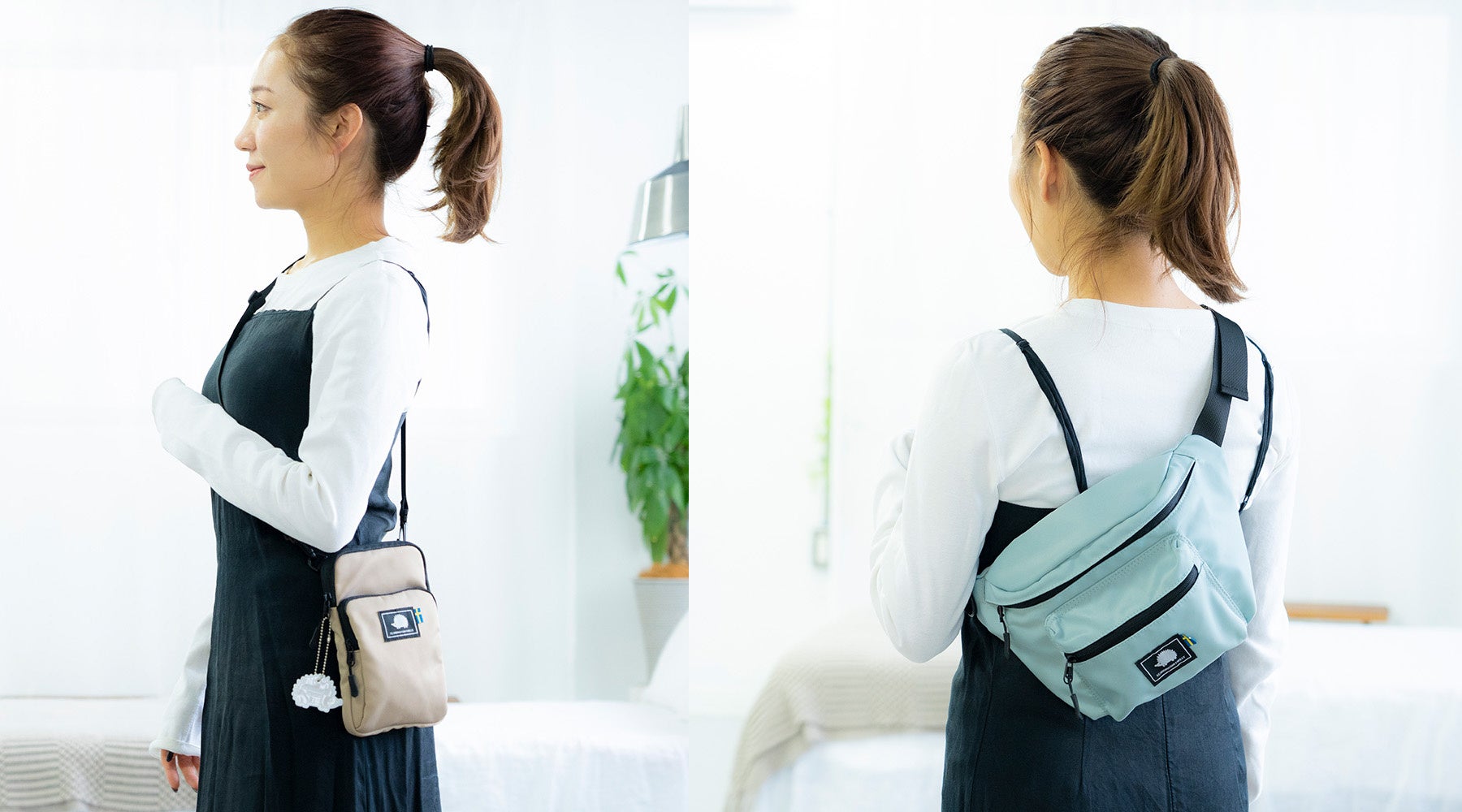 自転車やバイクに乗る時、お子様やペットとお出かけする時など、両手をあけてアクティブに行動したい時にぴったりなバッグです。ショルダーの長さを調整すればボディバッグからウエストバッグにも早変わり。お好きな使い方ができます。