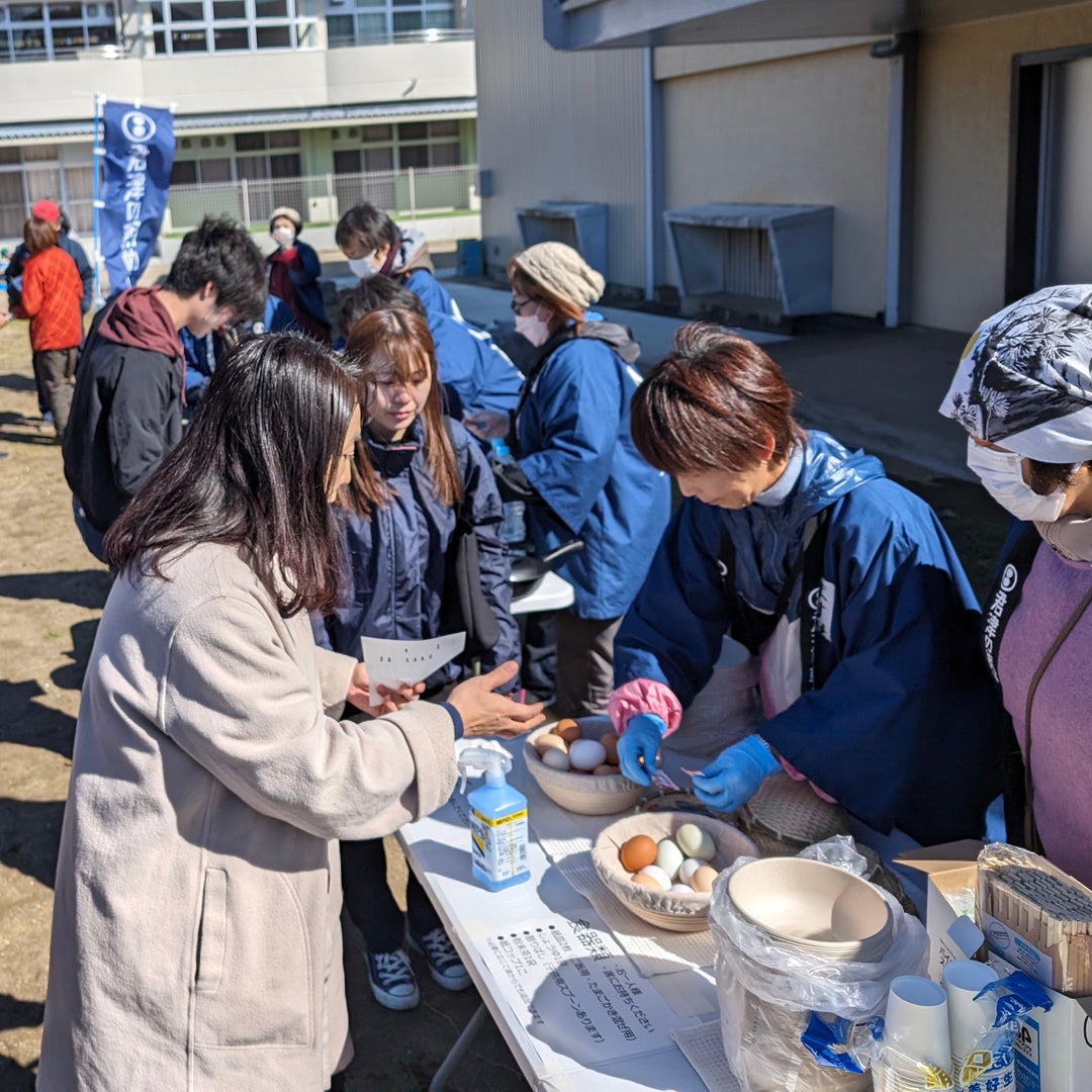 ②食材コーナーにて、米やたまご、また食器等を受けとります