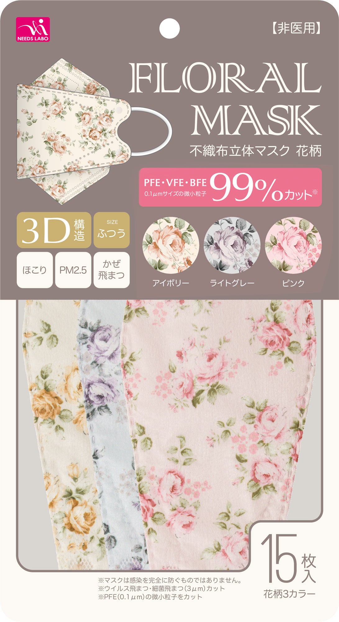 株式会社ニーズ(本社:兵庫県加古川市、代表取締役:本岡勝則)は、「不織布立体マスク 花柄」680円(税込)を3月31日より発売開始しました。