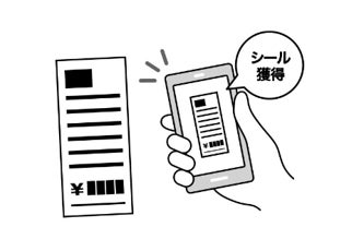 ③レシートの画像を読み込み、 ④「応募シール」を使って抽選に参加すると、