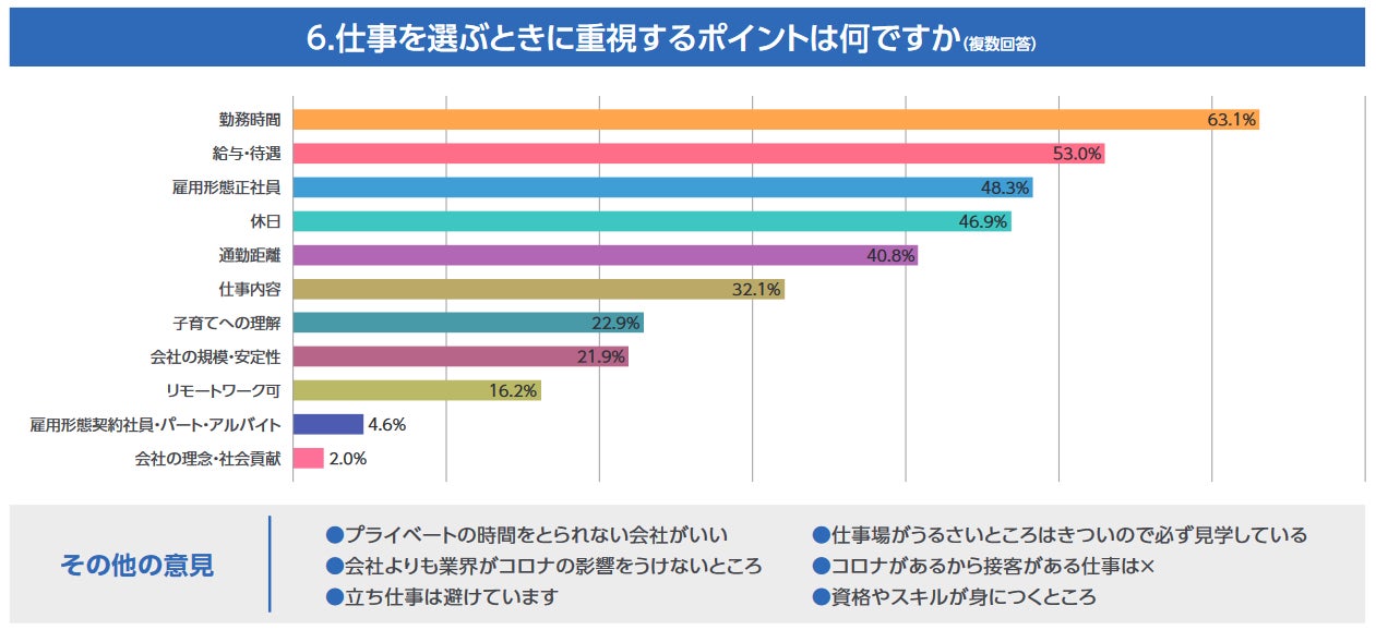 - 仕事を選ぶときに重視するポイント「勤務時間」「給与・待遇」「正社員」