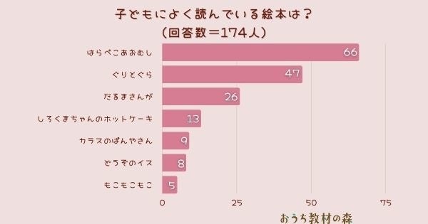 ARINA株式会社が運営する幼児、小学生の親御さん向けの教育メディア「おうち教材の森」(https://naki-blog.com/study/)は、日本全国の中学生以下のお子さんをお持ちの親御さんを対象に「子どもによく読んでいる絵本は?」とアンケート調査を実施しました。その結果を公表します。