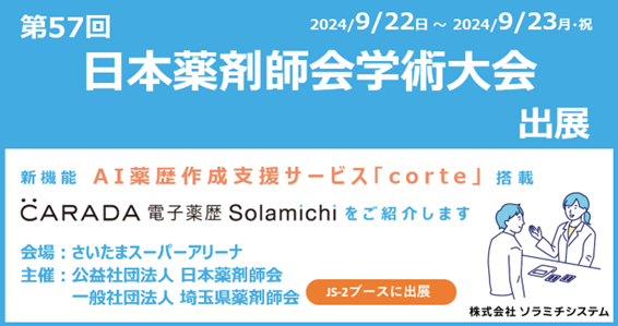 ~クラウド電子薬歴『CARADA 電子薬歴 Solamichi』の展示とAI薬歴作成支援サービス「corte」の体験会を実施~