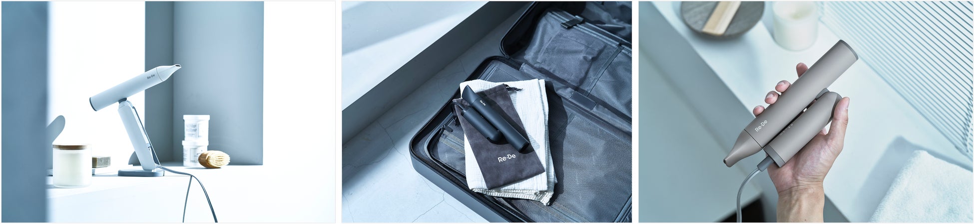 「Re・De Hairdry」は、業界トップクラスとなる3.6m3(立方メートル)の風量・53m/秒の風速による頭皮と髪を健やかに保つヘアケア性能と、たった255gという驚きのコンパクトさを実現した、革新的なドライヤーです。習慣的に使うものだからこそ“使い心地”を追求し、長く使っても疲れない軽さと、誰もが使いこなせるようなシンプルなユーザーインターフェースにこだわった製品となっています。