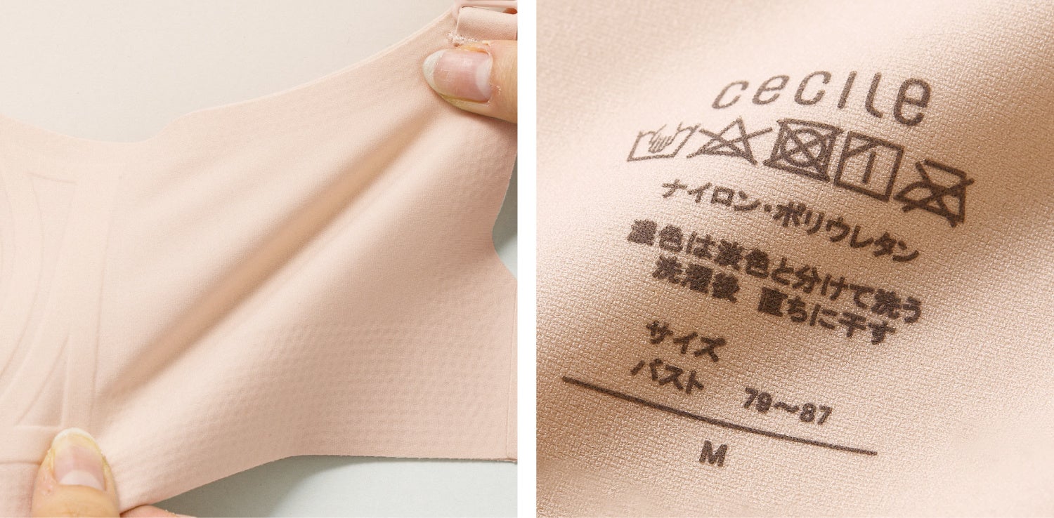 生地を2枚貼り合わせたボンディング加工で、縫い目のないやさしい着ごこち。