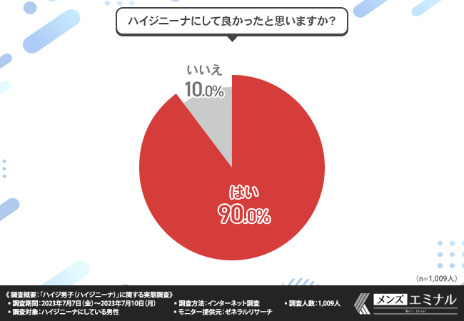 「ハイジニーナにして良かったと思いますか?」と質問したところ、9割の方が『はい(90.0%)』と回答しました。
