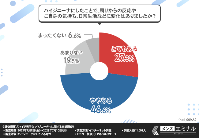- 【まとめ】ハイジ男子のおよそ6割がハイジニーナにしたことで清潔感が増したと回答!ハイジ男子になるメリットとは?
