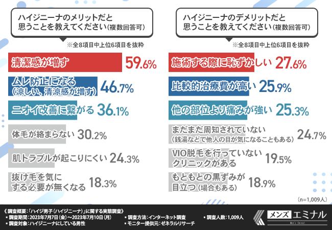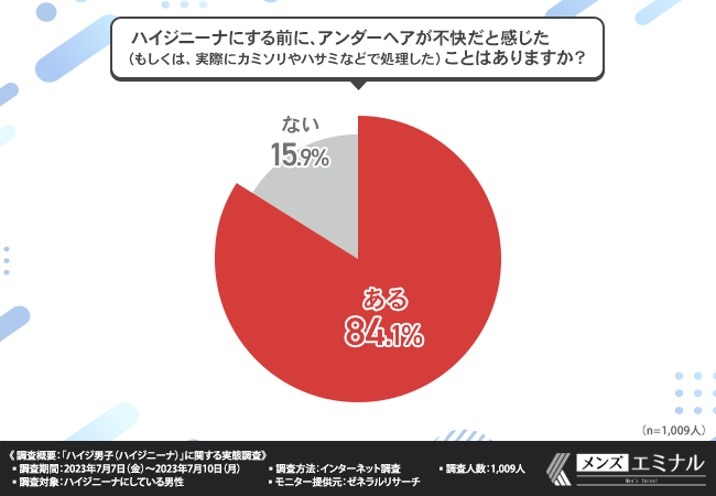 そこで今回、メンズ専用脱毛クリニックのメンズエミナル(https://mens-eminal.jp/lp/?refmedia=31073)は、ハイジニーナにしている男性を対象に、「ハイジ男子(ハイジニーナ)」に関する実態調査を実施しました。