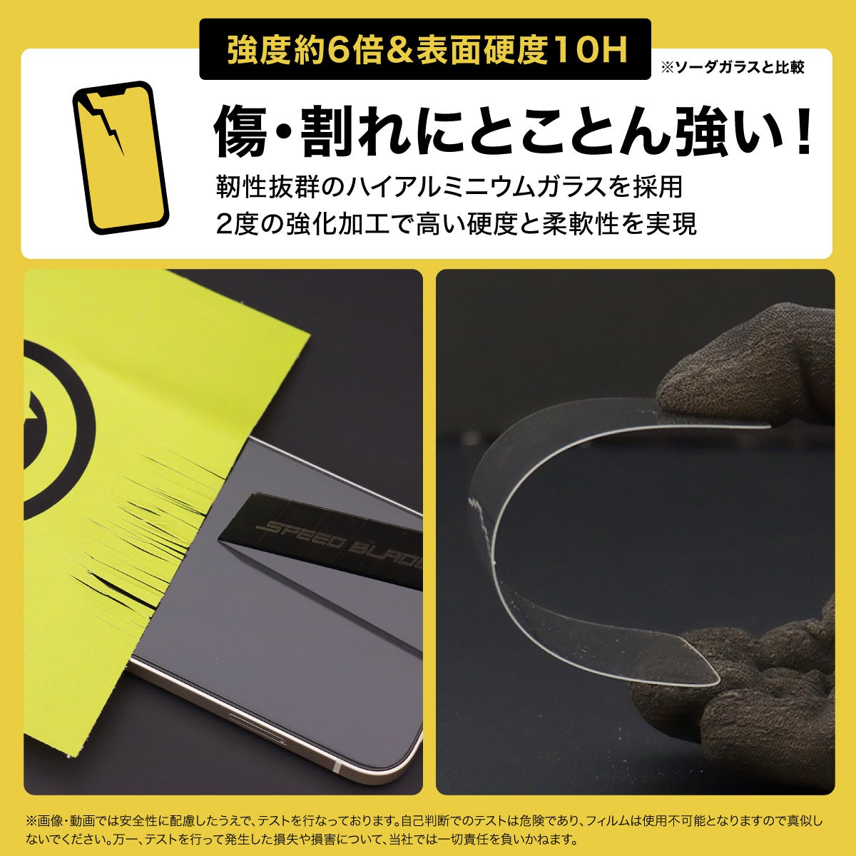 モンスターシリーズのガラスフィルムは、強靭なハイアルミニウムガラス素材を採用しており、2度の強化加工で高硬度と柔軟性を実現しています。