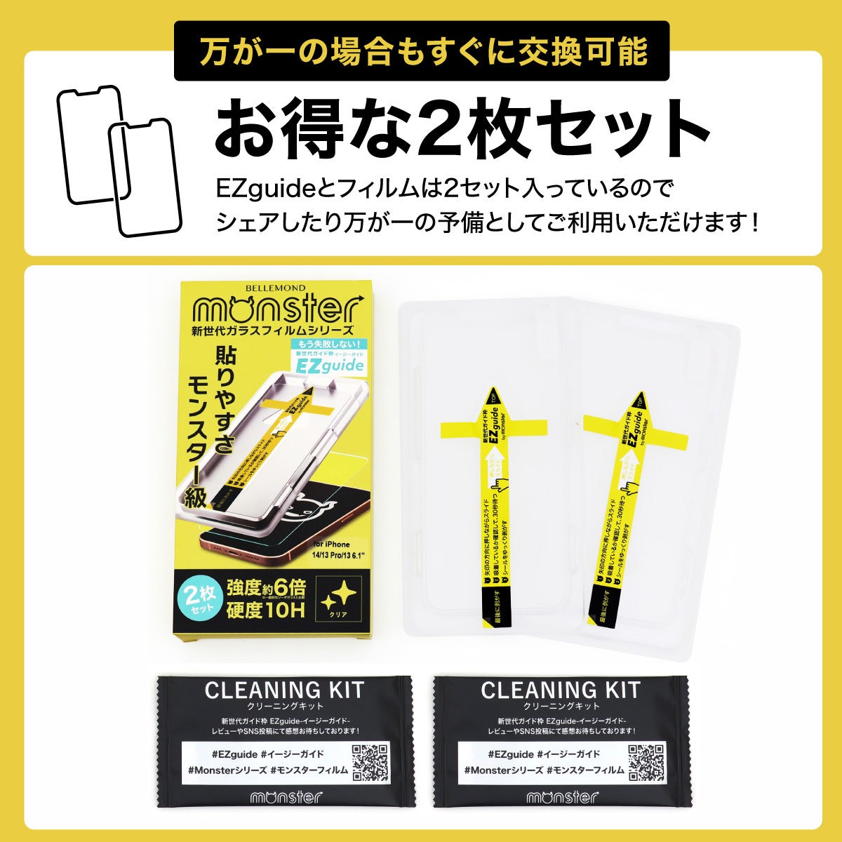 スマートフォン用モンスターシリーズは、全て2枚セットとなっております。2セット入っているので、万が一の場合にもすぐにフィルムを交換することができます。