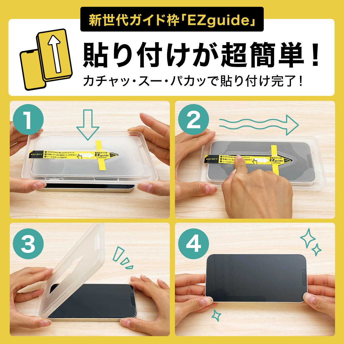 モンスターシリーズに採用しているEZguideは、スマホにセットするだけでガラスフィルムの貼り付けが完了する新しいガイド枠です。