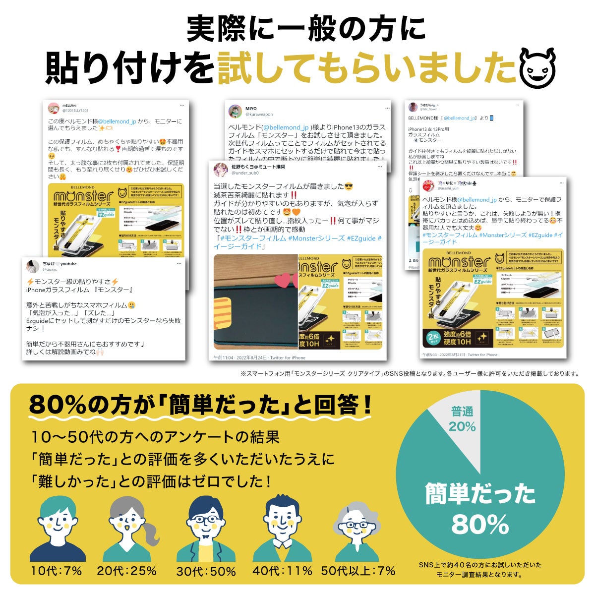 Fun Standard株式会社(本社:福岡県⼤野城市)が展開するモバイルアクセサリーブランド「BELLEMOND(ベルモンド)」より、スマートフォンにかぶせるだけで簡単にガラスフィルムが貼り付けできる新シリーズ「モンスター」を発売しました。モンスターは次世代ガイド枠「EZguide(イージーガイド)」を採用。従来のガイド枠の難点であったフィルムセッティングの必要がなく、「誰でも簡単に貼れる」を実現します。スマホ向け「モンスター」シリーズは予備にも使える2枚セットで1398円からのリーズナブルな価格にて販売。iPhone14、13シリーズを皮切りに、iPhoneSE、Android端末向けも順次発売予定となっております。
